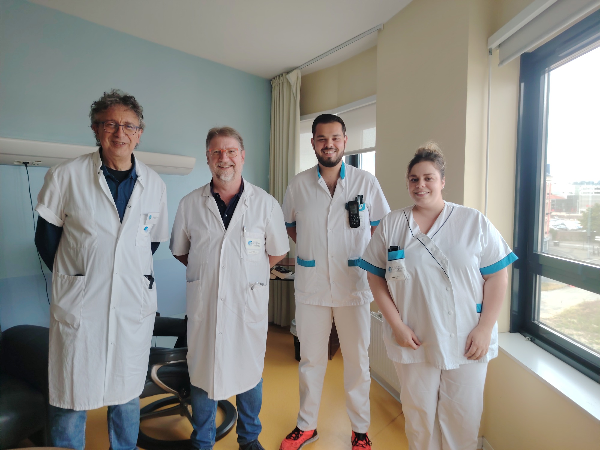 Les Drs Xavier Breton et Gilles Brunet et une partie de l’équipe du nouveau service de médecine des Ormeaux