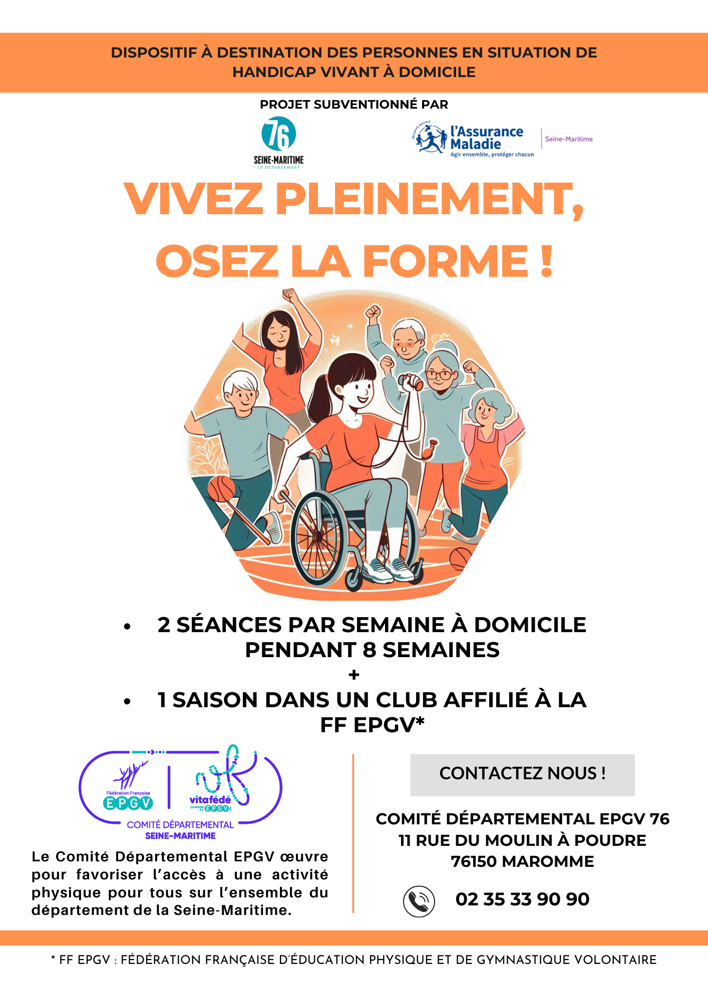 Pour toute demande d’information et inscription, contactez le Comité départemental EPGV 76 au 02 35 33 90 90.